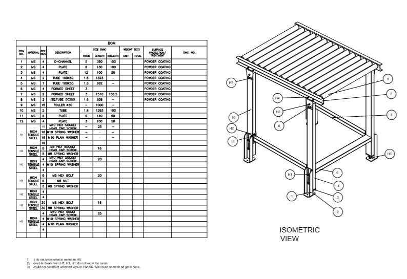 In this model gravity roller conveyor design is being given along with the manufacturing drawings