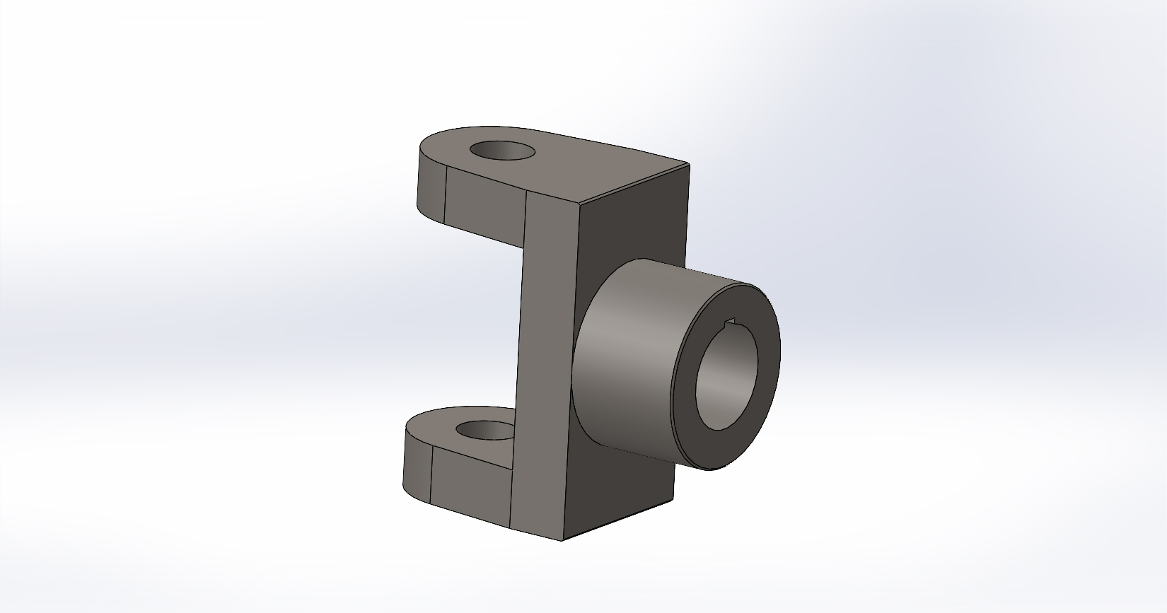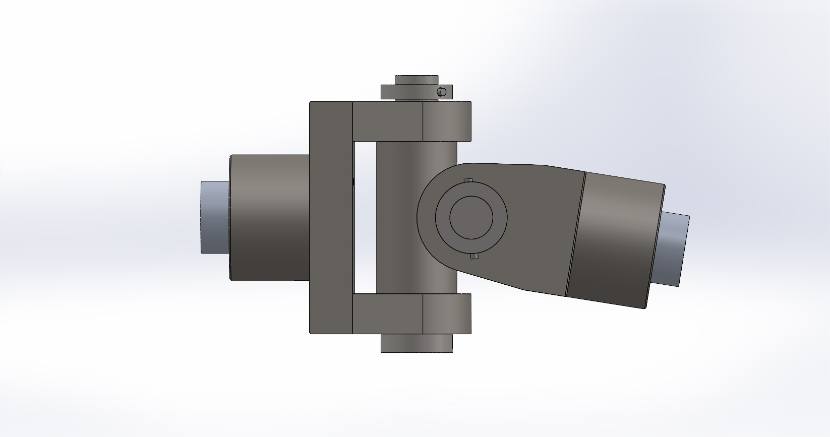 A SolidWorks-modeled universal joint enables rotational motion between misaligned shafts. It features a central cross with four arms and fork ends, accurately assembled in SolidWorks. This component compensates for shaft position variations, finding common use in drivetrains and machinery for flexible torque transmission. Central Block: The central block, also known as the universal joint cross or spider, is the main component of the universal joint assembly. It typically has a cross-shaped design with four arms, each containing holes or slots for attaching the fork ends. Collar: A collar is a cylindrical component that goes around the central block to secure the fork ends in place. It usually has an inner diameter matching the outer diameter of the central block, allowing it to slide over and hold the fork ends in position. Fork End: The fork ends are components that connect the central block to the yokes. They have a fork-shaped design with arms that fit into the holes or slots in the central block and the yokes. Fork ends are attached to the central block using bolts or pins. Key: A key is a small, rectangular component that fits into a keyway on a shaft. It prevents rotational slippage between the shaft and the components attached to it. The key is usually inserted into a keyway on the input or output shaft. Lockpin: A lockpin is a cylindrical component used to secure other components in place. It is inserted through aligned holes in two or more parts, preventing them from moving or separating. Lockpins are commonly used to secure yokes, fork ends, or collars in universal joint assemblies. Shaft: The shaft refers to the input and output shafts that transmit rotational motion to and from the universal joint assembly. They are typically cylindrical in shape and can have features like keyways or splines to connect with other components. Taper Pin: A taper pin is a type of pin with a tapered shape. It is commonly used for fastening two components together, such as connecting a collar to a shaft. The tapered shape provides a tight fit and helps prevent the pin from loosening or coming out. These components work together to allow rotational motion to be transmitted between two shafts at an angle in a universal joint assembly.