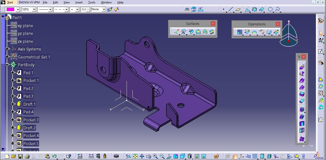 3D Model of BIW Sheet metal Part used in Car seat structure Design _Catia V5_cat.part_with history
