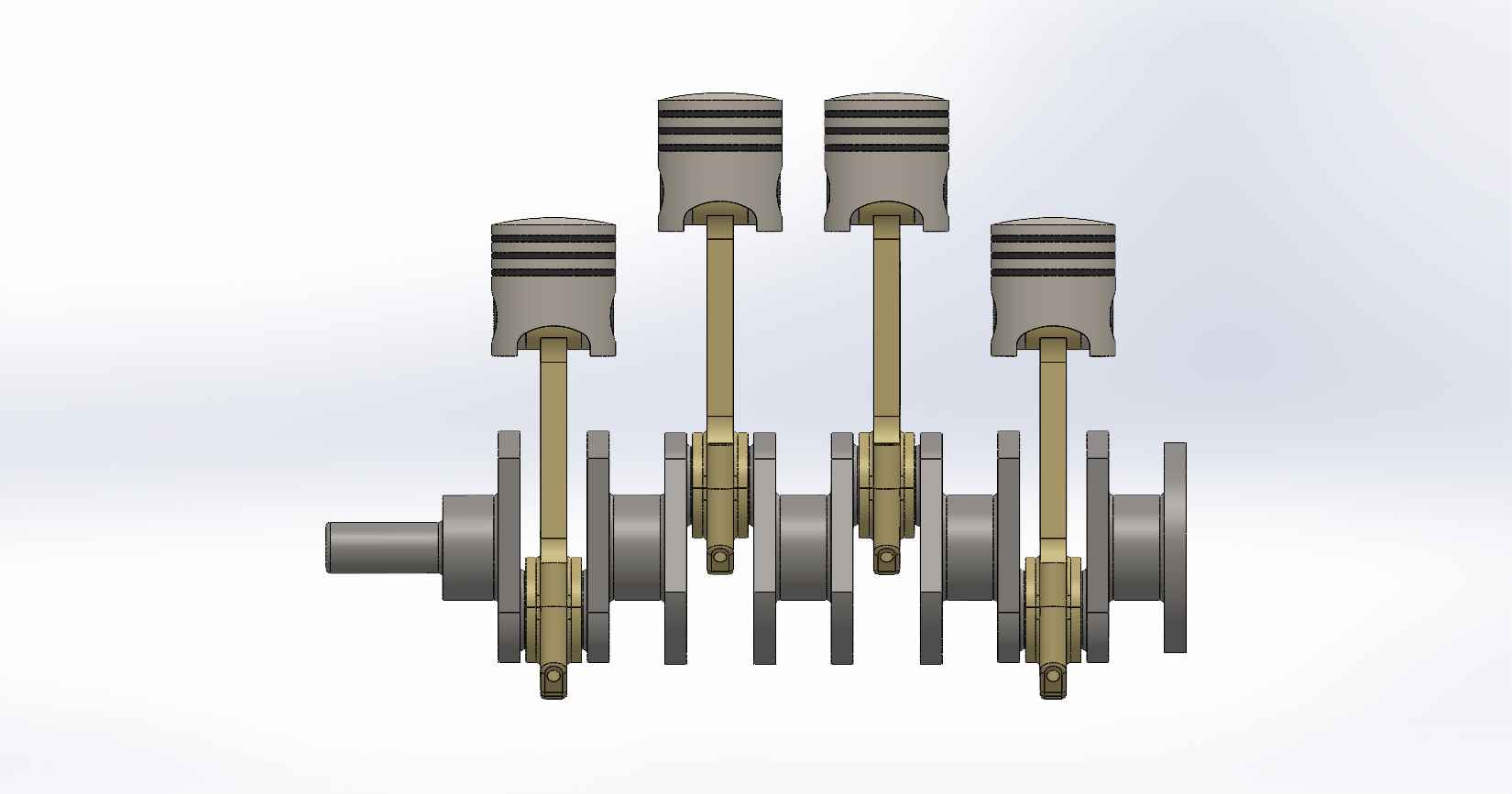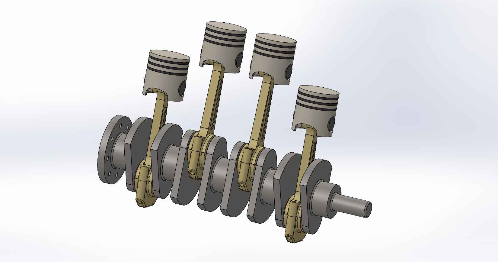 A four-stroke engine is a type of internal combustion engine commonly used in automobiles, motorcycles, and other vehicles. It consists of various parts that work together to convert fuel into mechanical energy. Here is a description of the key parts and assembly of a four-stroke engine, using SolidWorks as the design software. Piston: The piston is a cylindrical component that fits inside the engine cylinder. It moves up and down within the cylinder as a result of the combustion process. The piston is typically made of aluminum alloy and has piston rings installed around its circumference to create a seal between the piston and the cylinder wall. Piston Pin: The piston pin, also known as the wrist pin, is a cylindrical metal pin that connects the piston to the connecting rod. It allows the piston to pivot on the pin as it moves up and down within the cylinder. The piston pin is typically made of hardened steel and is secured in place with retaining clips or circlips. Piston Rings: Piston rings are metallic rings that are installed around the outer circumference of the piston. They ensure a proper seal between the piston and the cylinder wall, minimizing gas leakage and maintaining compression. There are typically three types of piston rings: compression rings, oil control rings, and scraper rings. Crankshaft: The crankshaft is a central rotating shaft that converts the reciprocating motion of the pistons into rotary motion. It is made up of multiple sections known as journals and throws. The connecting rods are connected to the throws of the crankshaft. The crankshaft is typically forged from high-strength steel and precisely balanced to minimize vibrations. Connecting Rod: Connecting rod, also called con rod, connect the piston to the crankshaft. They transmit the linear motion of the piston to the rotary motion of the crankshaft. Connecting rods are usually made of forged steel or aluminum alloy for high strength and durability. They have bearings at both ends to provide smooth movement. Connecting Rod Cap: Connecting rod cap are detachable covers that secure the connecting rods to the crankshaft. They are typically separate components that bolt onto the lower end of the connecting rods. The connecting rod caps are carefully aligned and torqued to ensure proper assembly and smooth operation. Assembly: To assemble these components in SolidWorks, you would create individual part files for each component (piston, piston pin, crankshaft, connecting rods, connecting rod caps) with their respective 3D models. Then, in an assembly file, you would import these part files and position them correctly to represent the assembly configuration. The connecting rod caps would be attached to the lower ends of the connecting rods, and the piston pin would be inserted through the piston and connecting rod. The connecting rods would then be attached to the corresponding throws on the crankshaft. Proper alignment, clearances, and fastening methods should be observed during the assembly process. SolidWorks provides tools for creating and manipulating the 3D models, applying assembly constraints, and verifying the fit and motion of the components. It also allows you to generate technical drawings of the assembled engine for manufacturing and documentation purposes.
