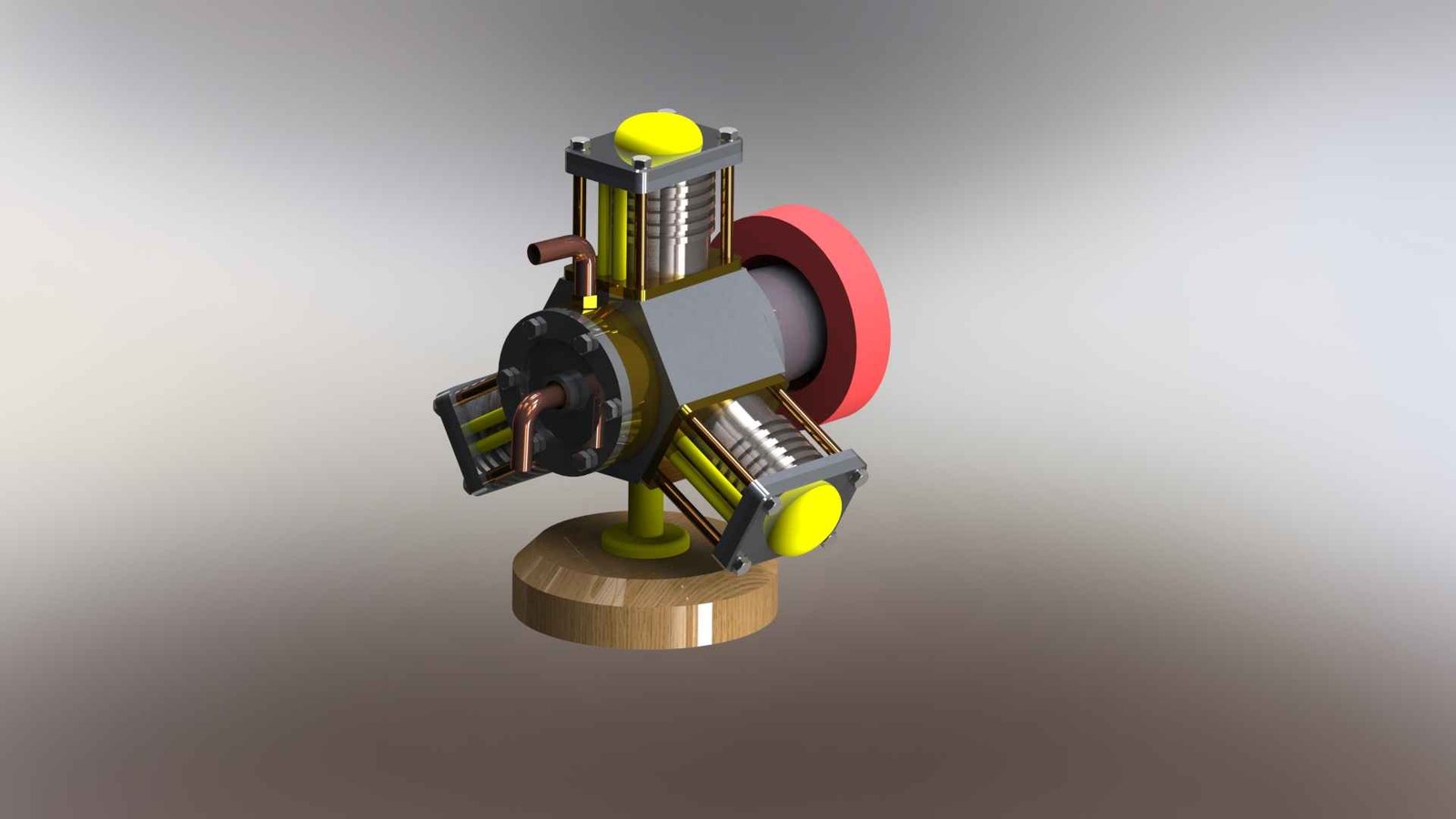 3-CYCLINDER RADIAL STEAM ENGINE MODELLED IN SOLIDWORKS.