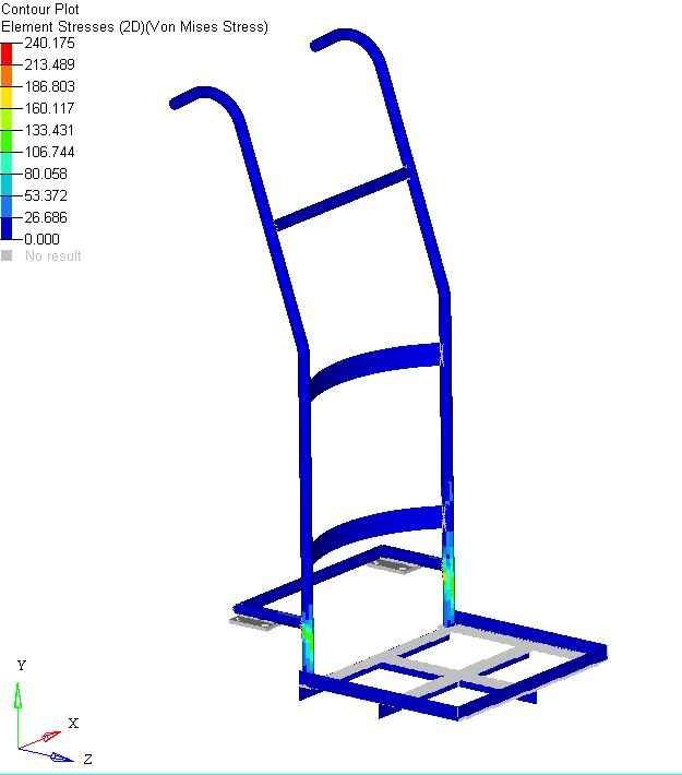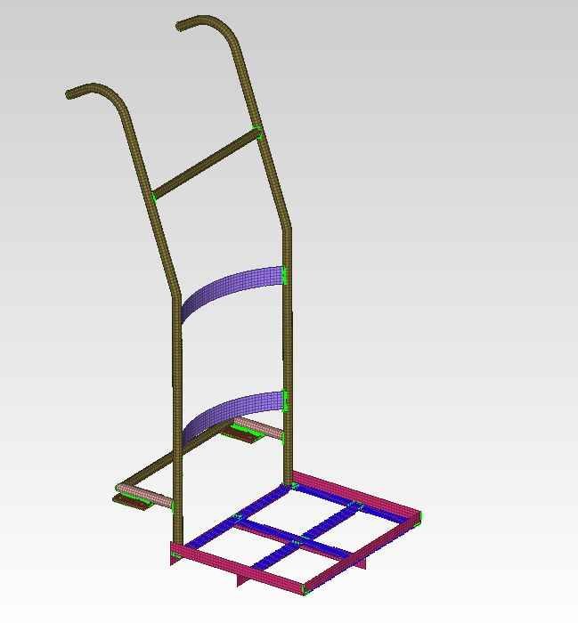 Cad model source Abhishek devanal profile , source is DesignGyan FE model generated from CAD in Hypermesh optistruct used for meshing (preprocessing) and used to run the analysis ( processing) and results are viewed in hyperview ( post processing) 2D and 3D meshing is been done and connection between components is done by rigid 1D elements ( RBE2 elements) Loading region and boundary condition is shown in the images as well as details are given in the report The equipment shown illustrates the barrel/Drum moving trolley. This type of trolley’s are used in the industries as per the requirement to move the heavy barrels/drums from one location to the other