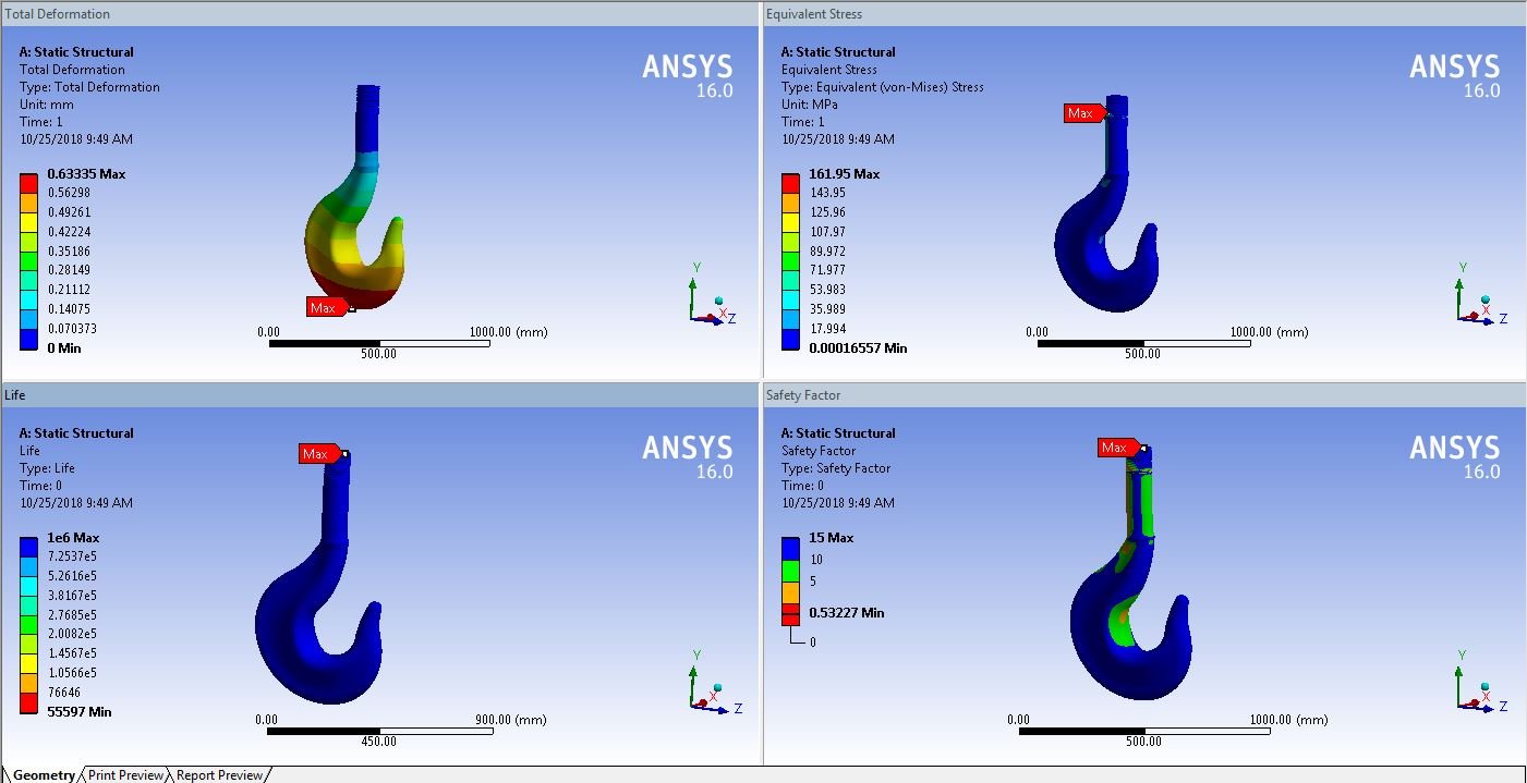 The tutorial describes the how to carryout the linear static analysis for crane hook and its one of the critical part so its necessary to check the maximum load carrying capacity of the crane hook