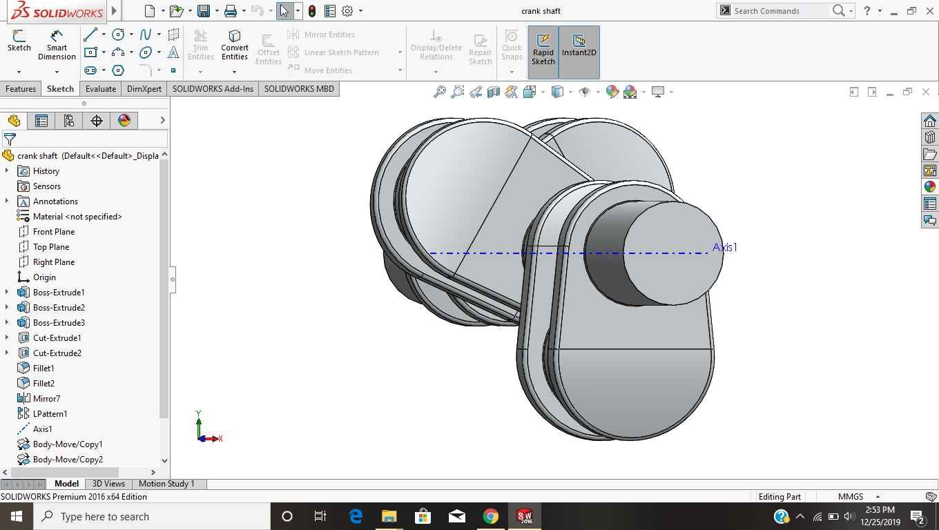 crank shaft use in engine . design in solidworks part.